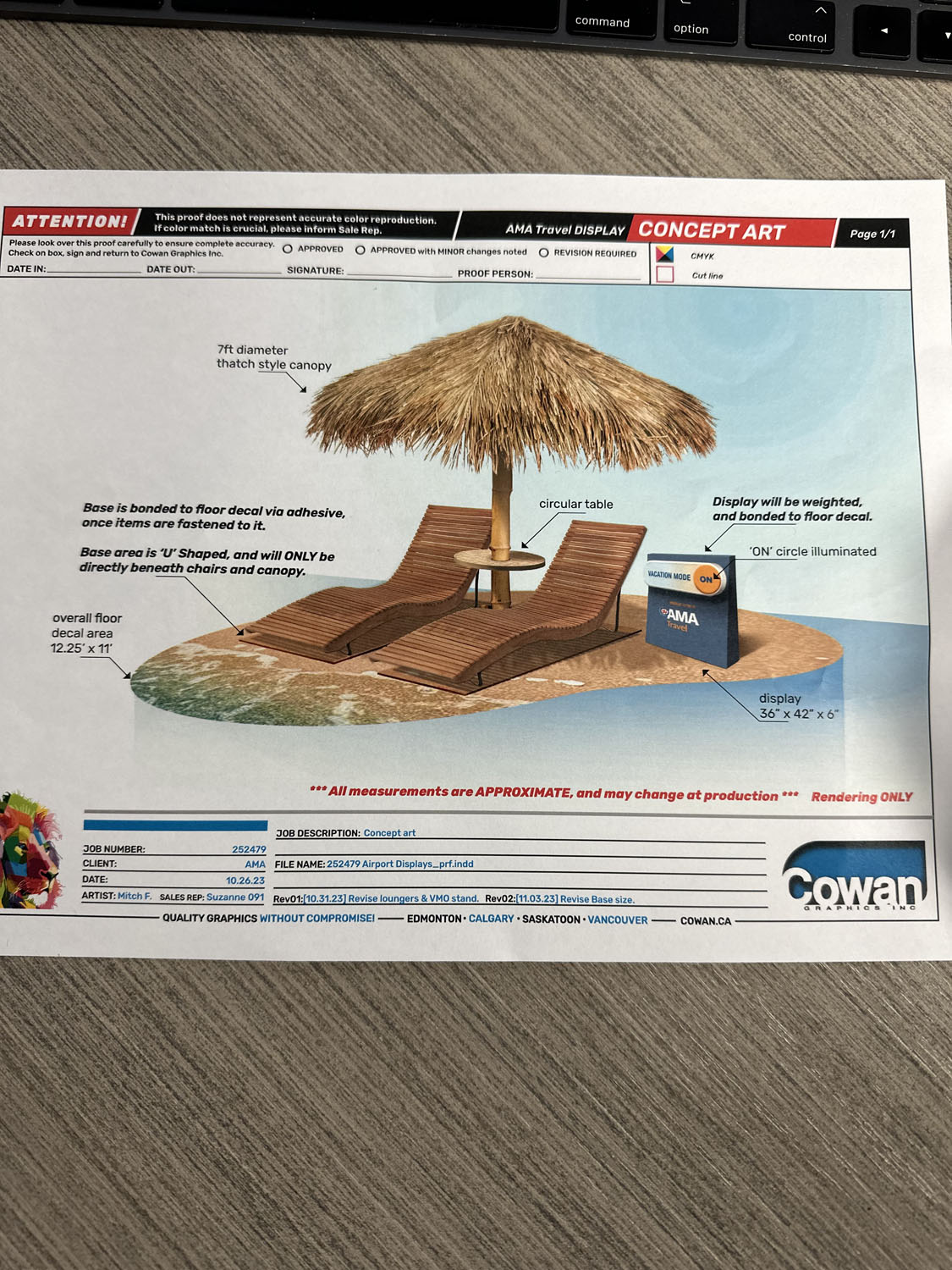 Being approached by Cowan Graphics to collaborate on a project for one of their prestigious clients was an exciting opportunity for us at B Creative. The task? Crafting four beach lounge chairs and two matching tabletops to adorn the Edmonton International Airport – a project we couldn’t resist being a part of.