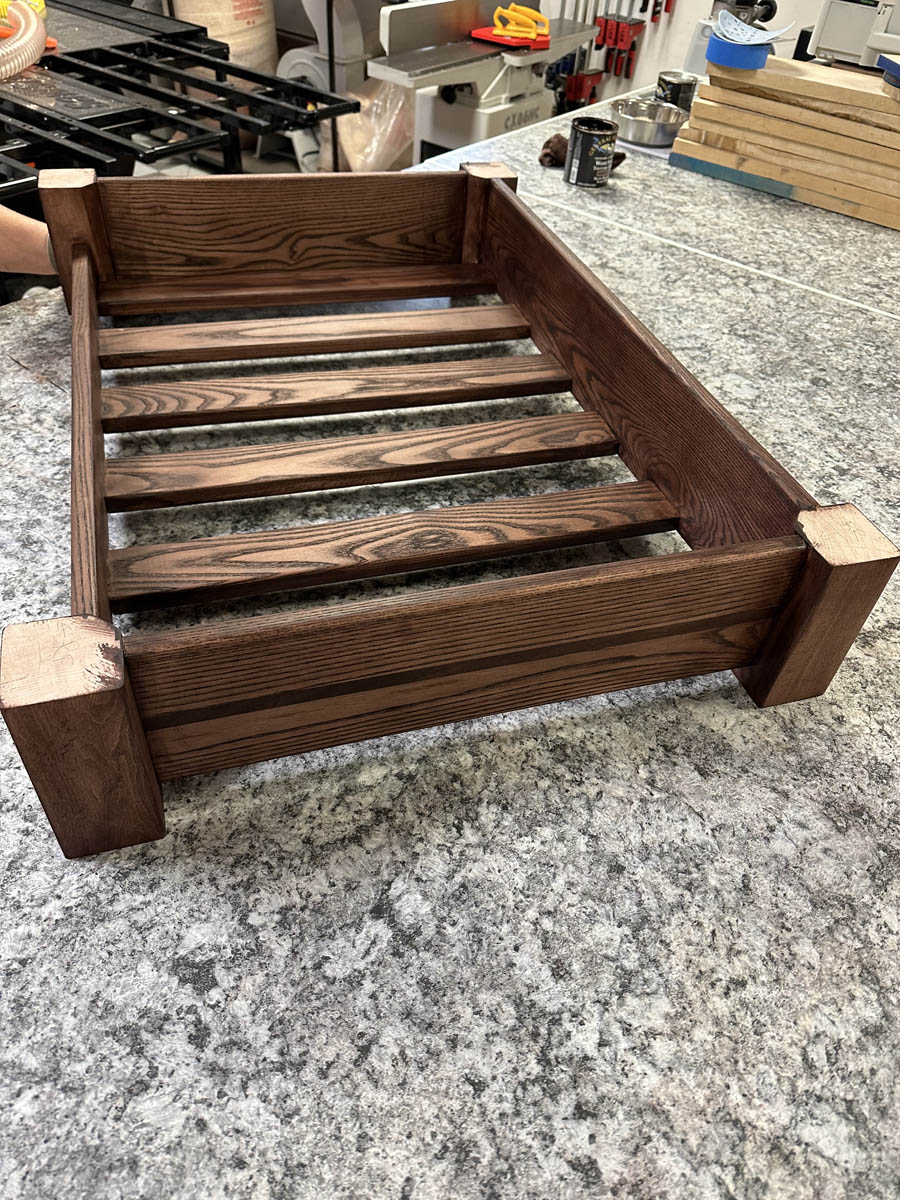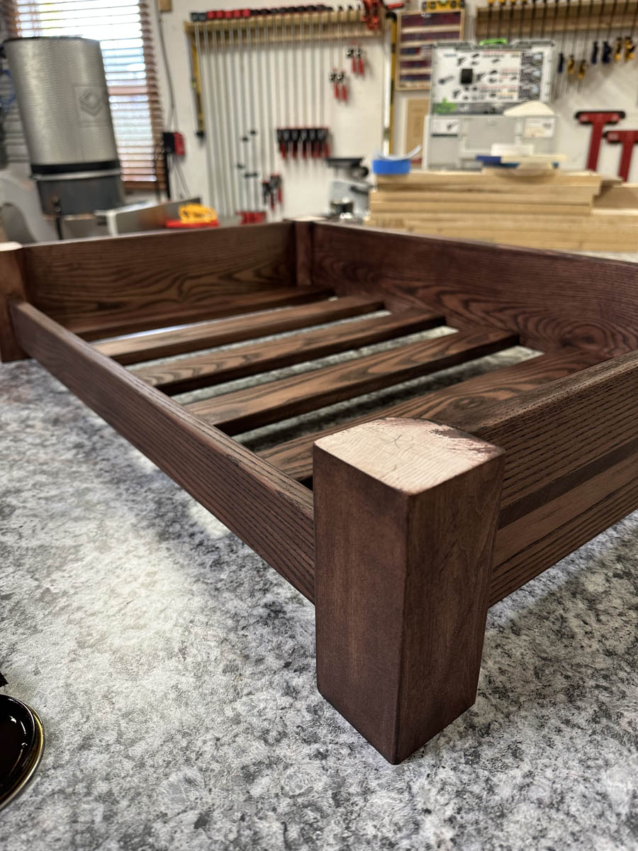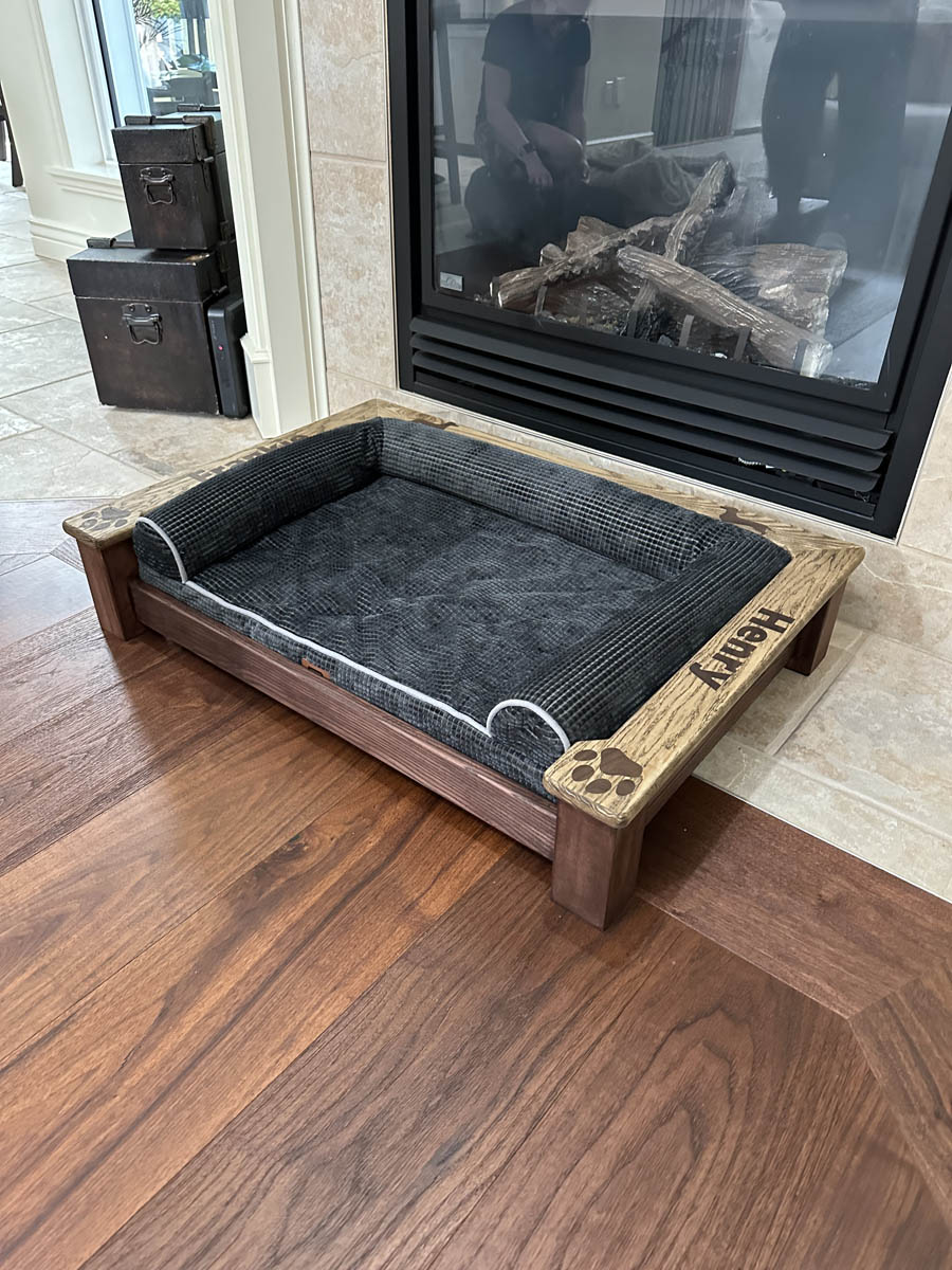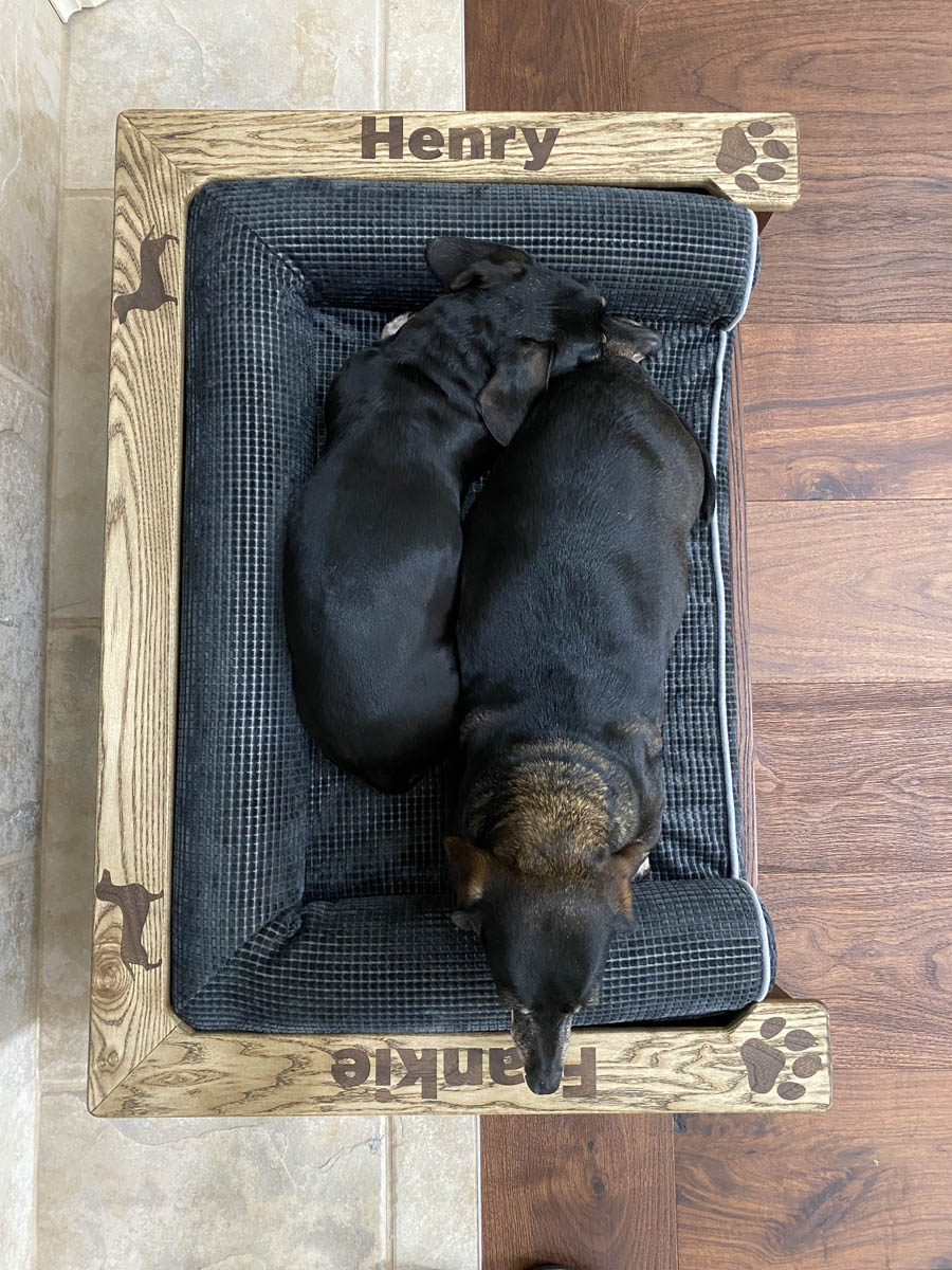 Frankie & Henry's Custom Dog Bed Pet Furniture Our client wanted a unique piece for their two dogs so we made sure that this bed not only looked good but fit well with their two adorable dogs.