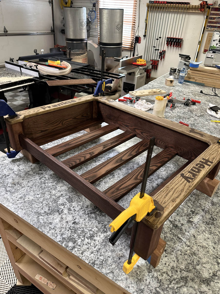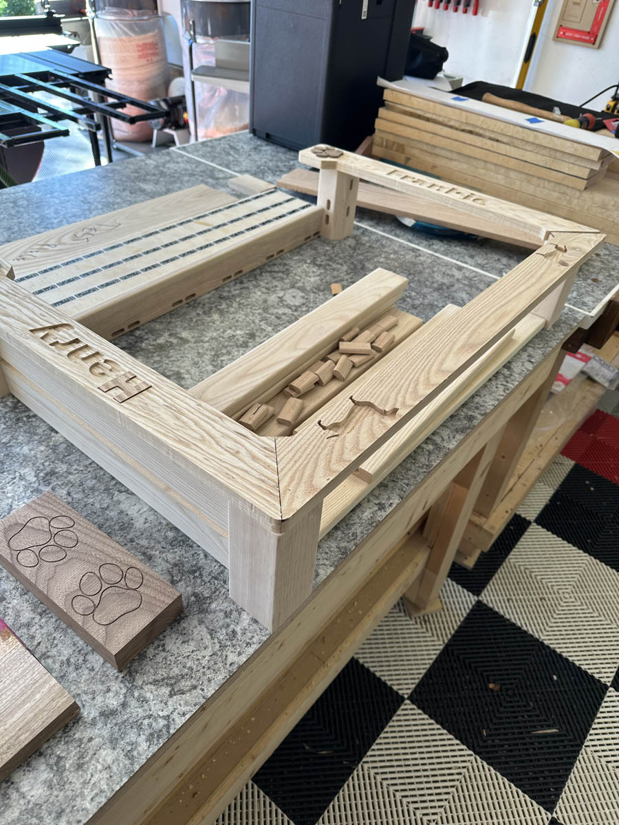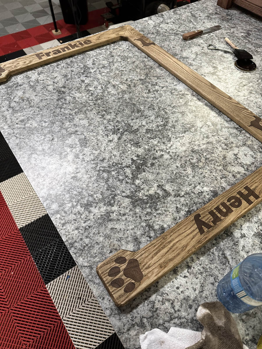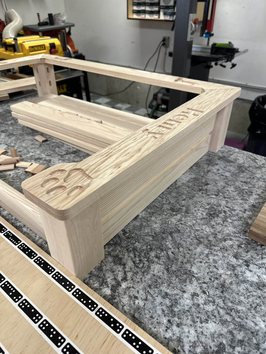 Frankie & Henry's Custom Dog Bed Pet Furniture Our client wanted a unique piece for their two dogs so we made sure that this bed not only looked good but fit well with their two adorable dogs.