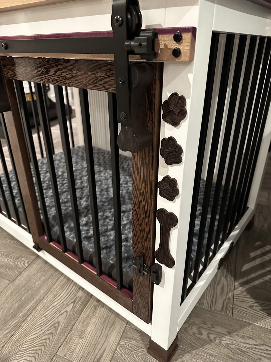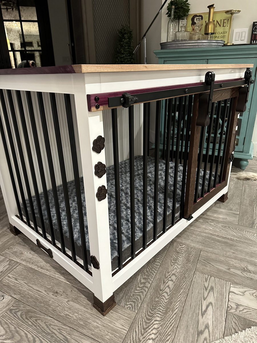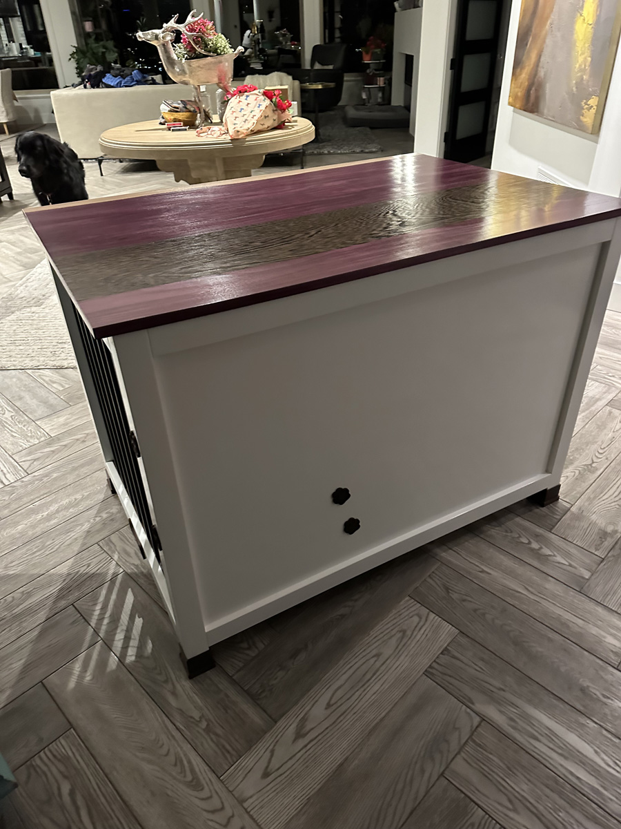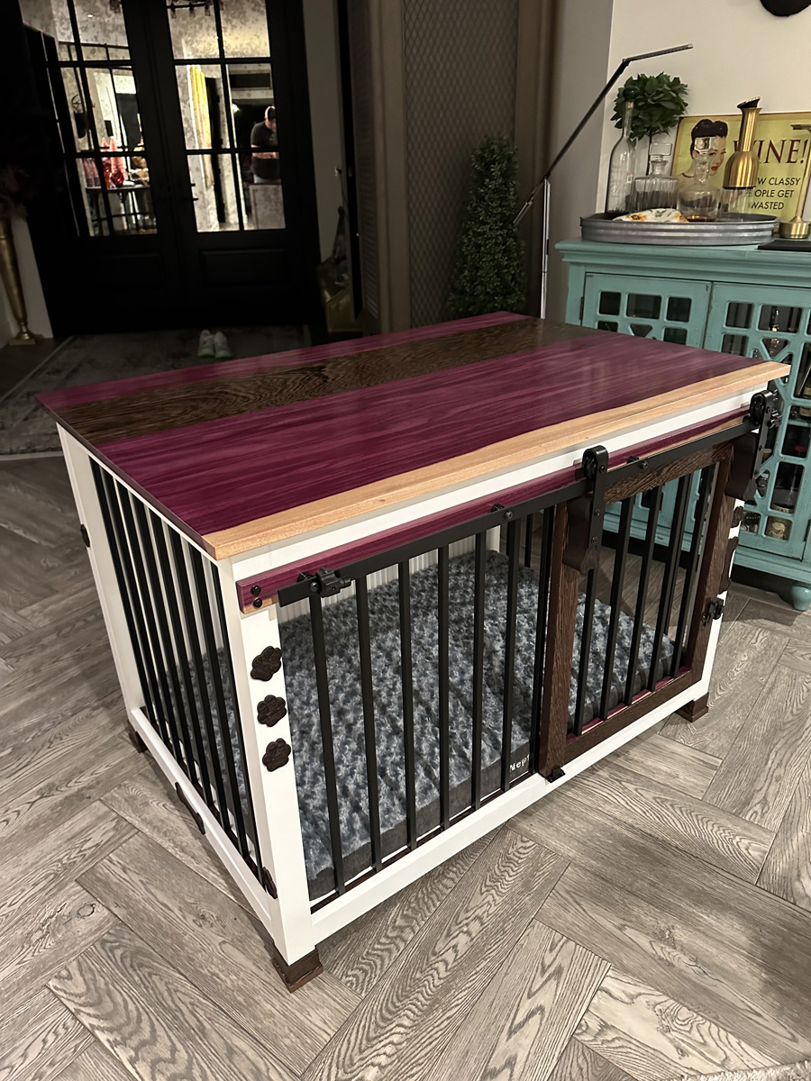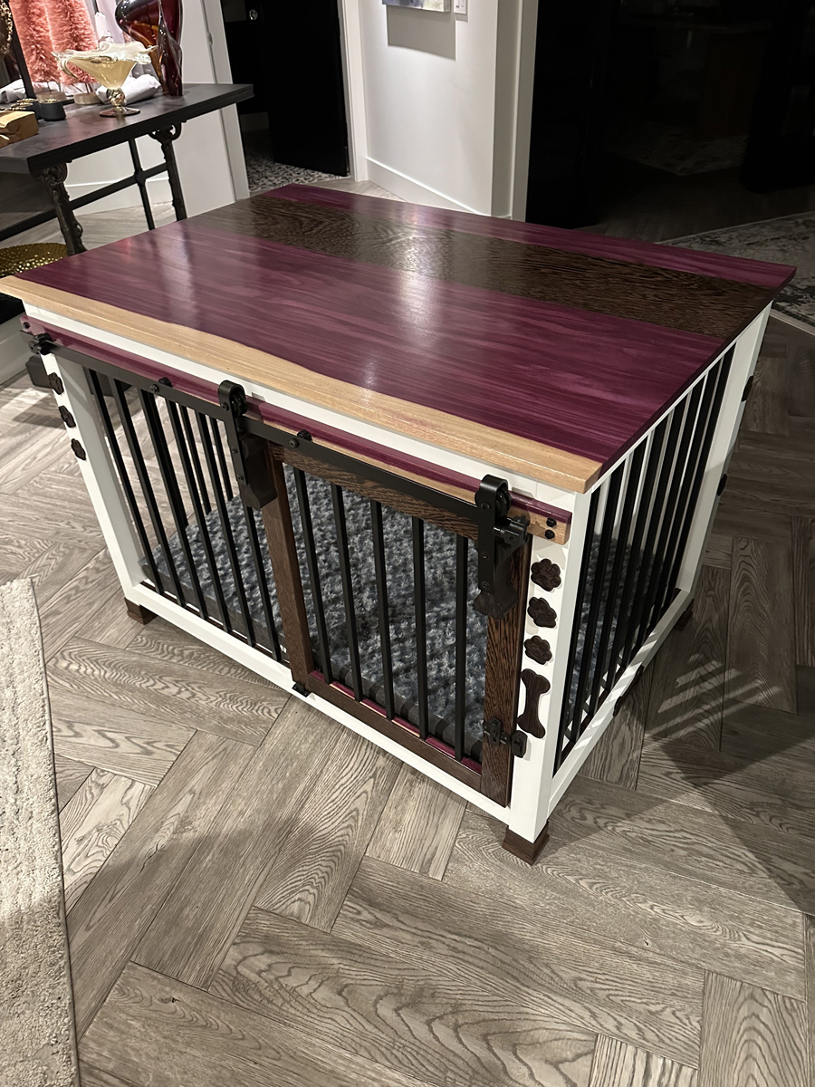 Purple Heart Dog Crate Pet Furniture Our client picked a fun design that gives it a ton of personality.