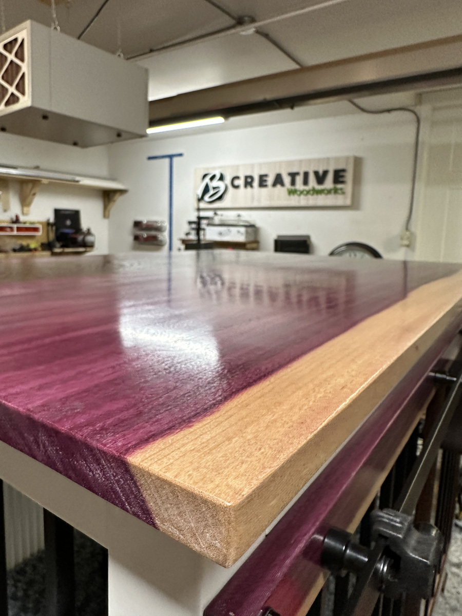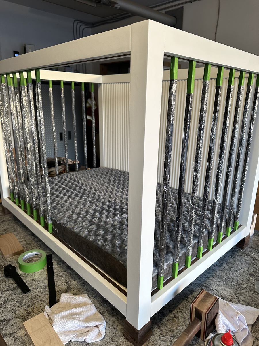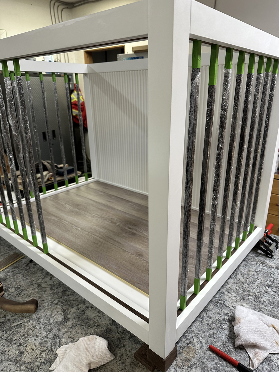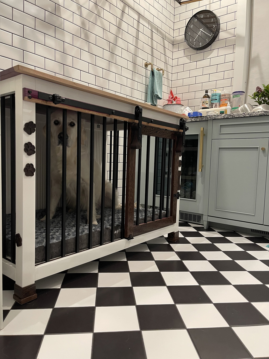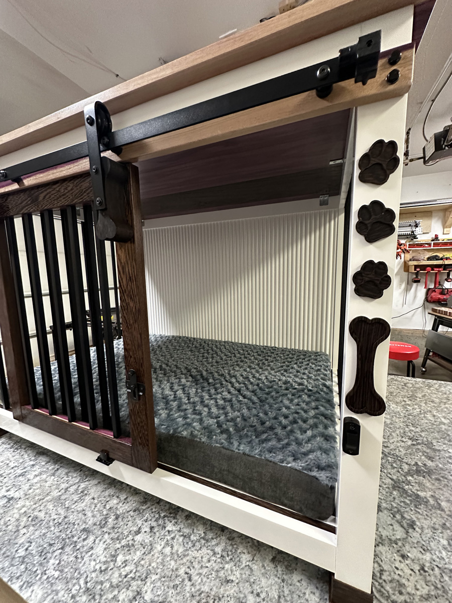 Purple Heart Dog Crate Pet Furniture Our client picked a fun design that gives it a ton of personality.