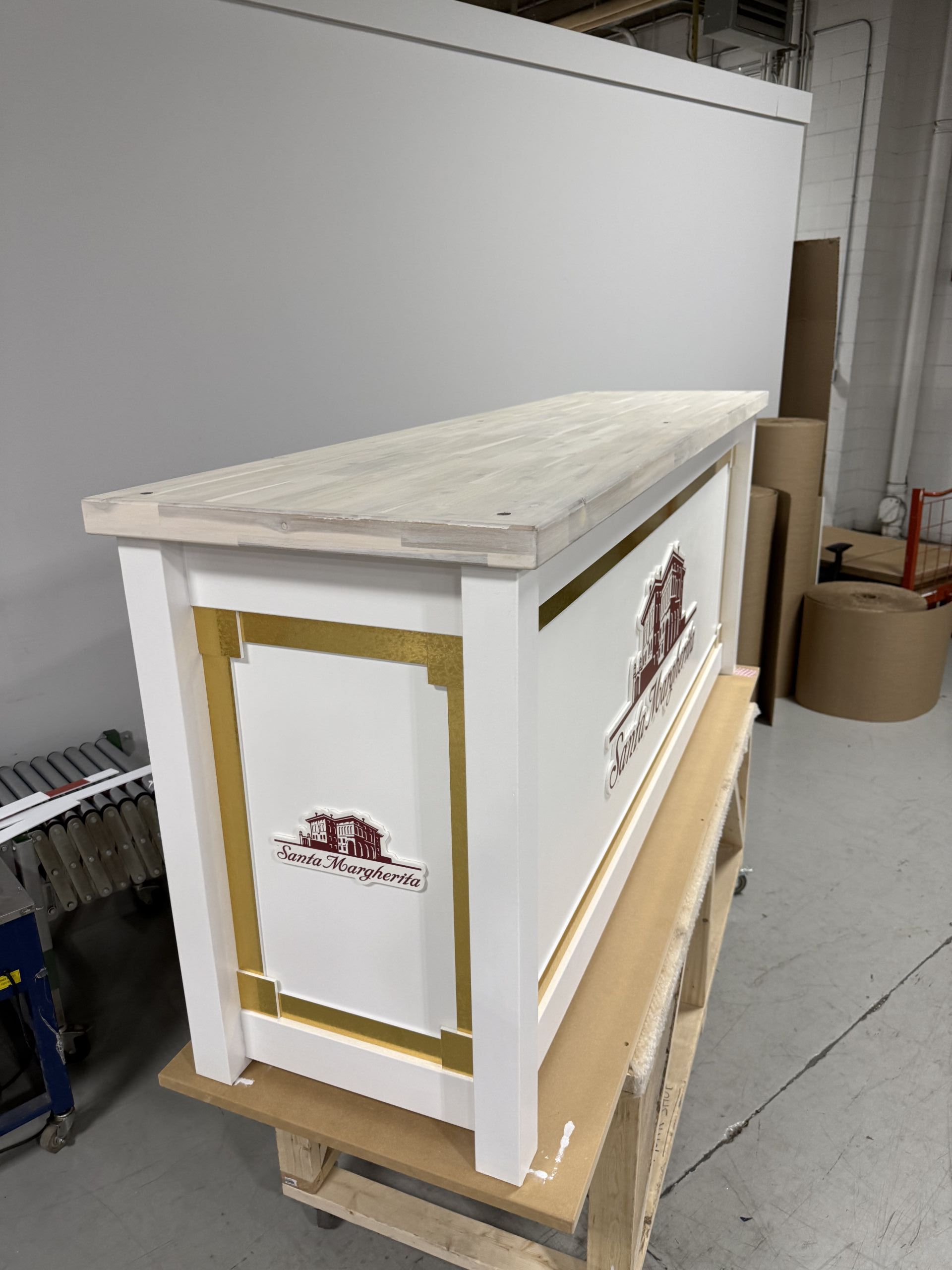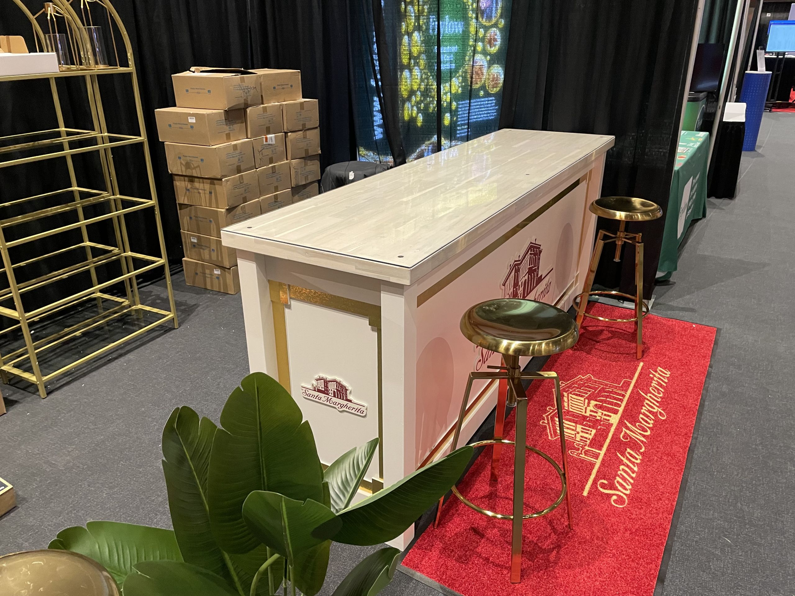 Santa Margherita Bar needed a bar table for their space at a convention we crafted a clean looking bar with some flair.